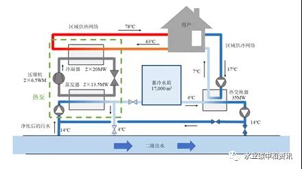 優(yōu)勢:污水處理廠出水比原污水具有更高的潛熱值,通過水源熱泵系統(tǒng)提取熱能也相對容易,可避免熱交換器(熱泵)防污、防堵、防腐構(gòu)造等問題。