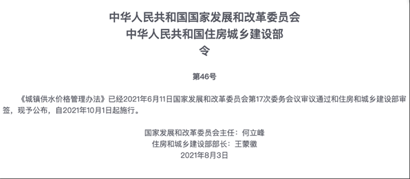 經(jīng)過(guò)一年多的期盼,就在剛剛,國(guó)家發(fā)改委通過(guò)其官網(wǎng)正式對(duì)外公布新修訂的《城鎮(zhèn)供水價(jià)格管理辦法》