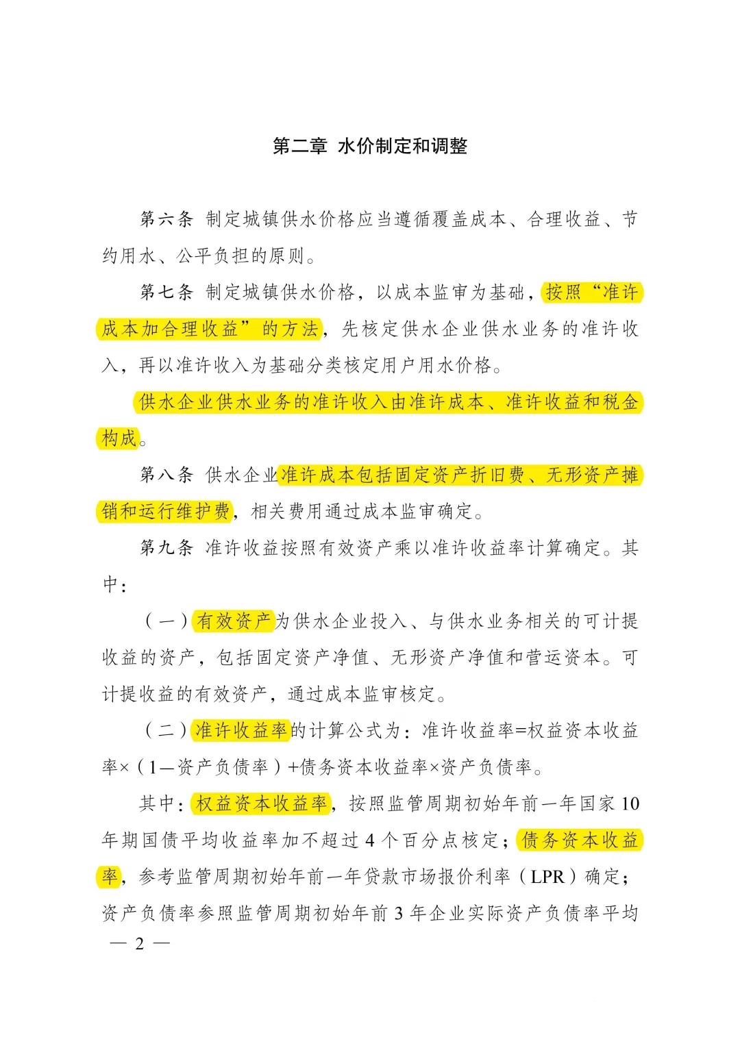 三是建立了參考市場(chǎng)利率合理確定供水收益率的機(jī)制。明確供水企業(yè)準(zhǔn)許收益率根據(jù)權(quán)益資本收益率、債務(wù)資本收益率確定,權(quán)益資本收益率按照10年期國(guó)債收益率加不超過(guò)4個(gè)百分點(diǎn)核定,債務(wù)資本收益率按照貸款市場(chǎng)報(bào)價(jià)利率確定,有利于吸引社會(huì)資本進(jìn)入,促進(jìn)供水行業(yè)健康持續(xù)發(fā)展。