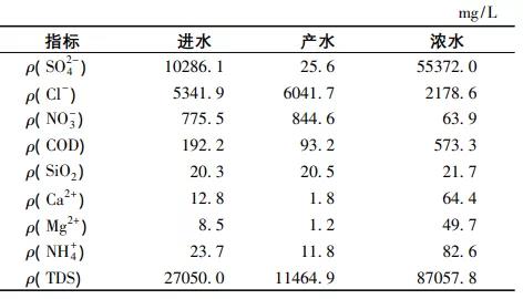 由圖2和表3可知:納濾系統(tǒng)的so2-4平均截留率高達(dá)99.7%,且穩(wěn)定性很高,說明系統(tǒng)對so2-4具有很好的截留效果。納濾系統(tǒng)的cl-和no-3平均截留率分別為-13.7%和-10.8%,納濾對cl-和no-3出現(xiàn)負(fù)截留率主要是由道南平衡作用造成的,so2-4與膜表面固定電荷的相互作用,導(dǎo)致cl-和no-3在納濾膜中的傳輸作用被促進(jìn),以保持納濾膜兩側(cè)溶液的電中性。
