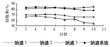 高分離納濾系統(tǒng)及各子系統(tǒng)運行期間(2—11月)的水回收率如圖5所示。