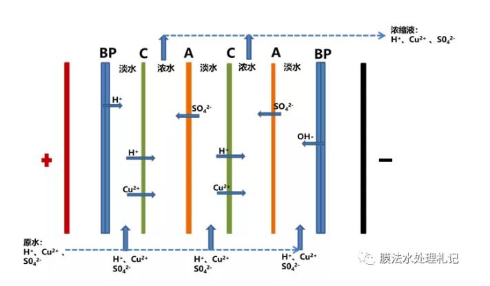 含有高濃度金屬離子的廢水系統(tǒng),對電滲析而言,往往是非常頭疼的事情。一方面部分金屬離子在系統(tǒng)中容易形成膠體,或者運行過程中濃水和極水容易結垢,造成設備污堵;另一方面多價金屬離子容易進入極水室,從而在陰極室被還原成金屬單質,從而降低電極板處理效率,且不易恢復。